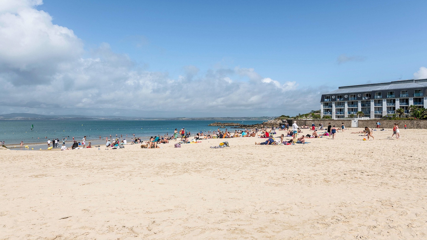 Bahnhof Quimper (23 km). Buslinie 951 ab dem Bahnhof von Quimper Richtung Douarnenez (Bushaltestelle Office du Tourisme), dann Linie 1 des TudBus (Haltestelle Sables blancs). Sonntags verkehren keine Busse.